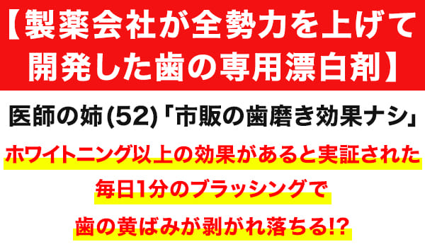 でもそれが、国に認められた有効成分が入った薬用ホワイトニングジェルによって、毎日1分のセルフケアで歯が漂白されるそうなんですよ…